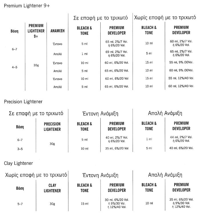 Εφαρμόστε σε στεγνά, άλουστα μαλλιά. Για εφαρμογές χωρίς επαφή με το τριχωτό (ανταύγειες). Μην